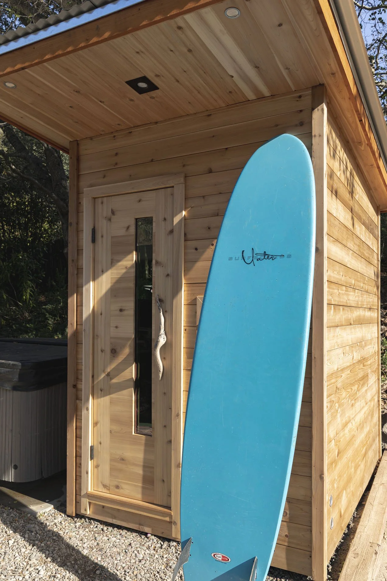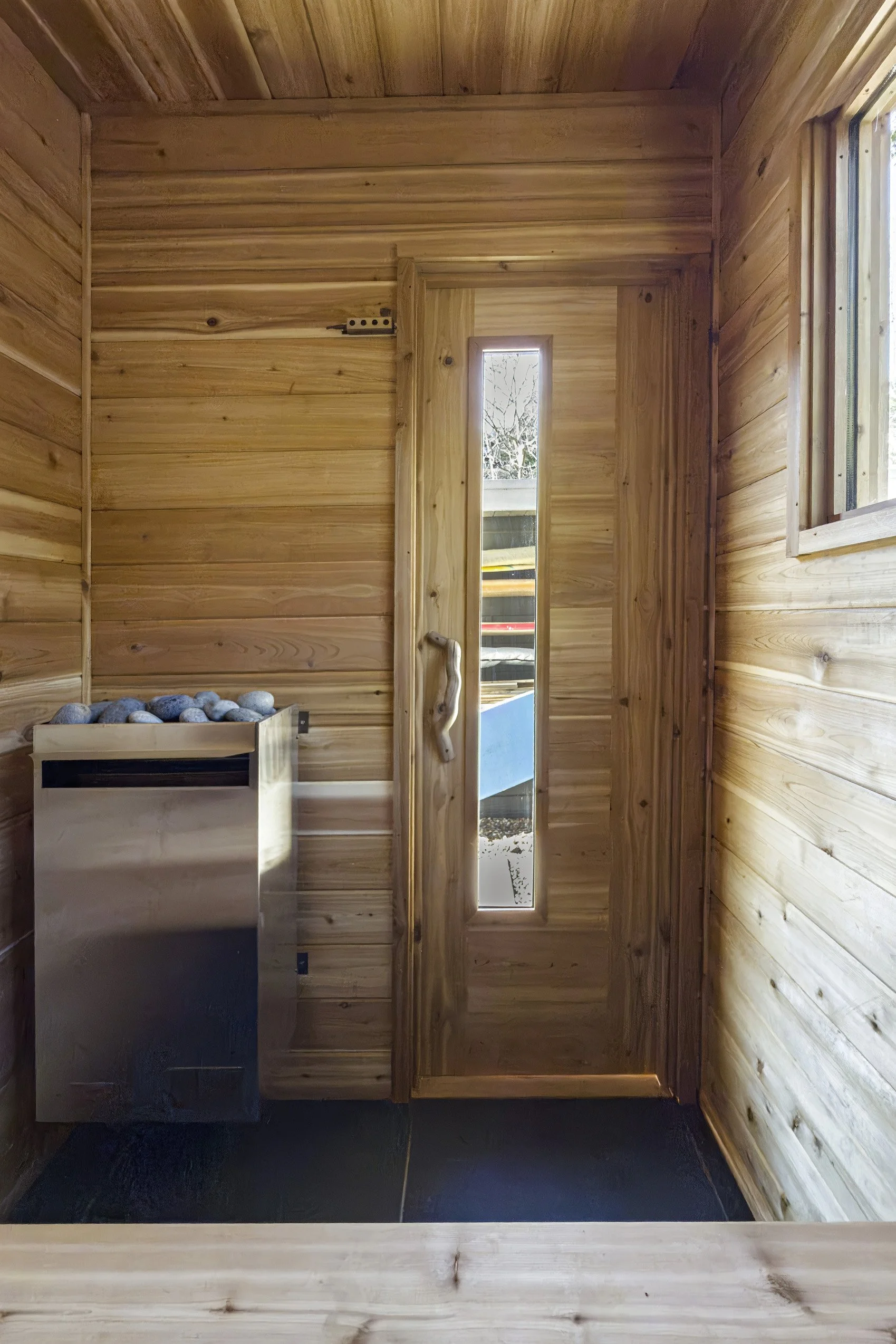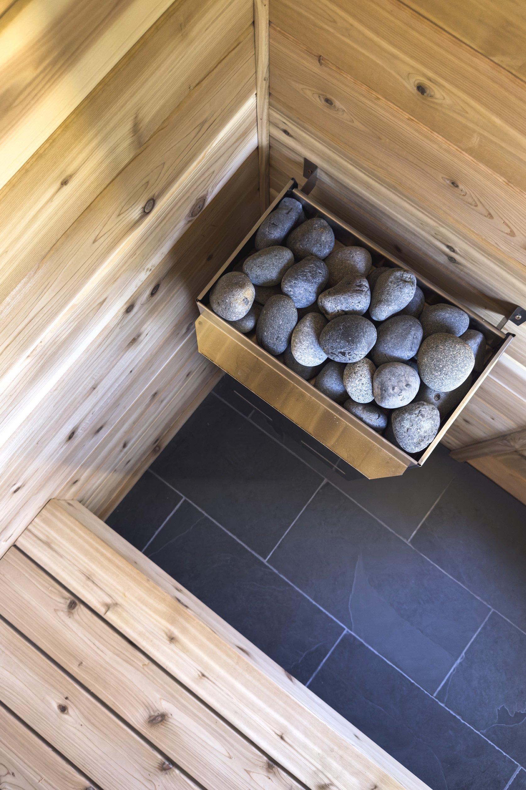 Our saunas are designed and built by hand using traditional methods and high-quality natural materials. Each is framed in Douglas Fir, and fully insulated to maintain temperatures and increase longevity. Our saunas aren’t mass-produced kits with no insulation; they heat up quickly and retain the heat, making them much more energy efficient. Inside and out, we use Western Red Cedar — chosen for its warmth, durability, and timeless character — with slate flooring beneath your feet.