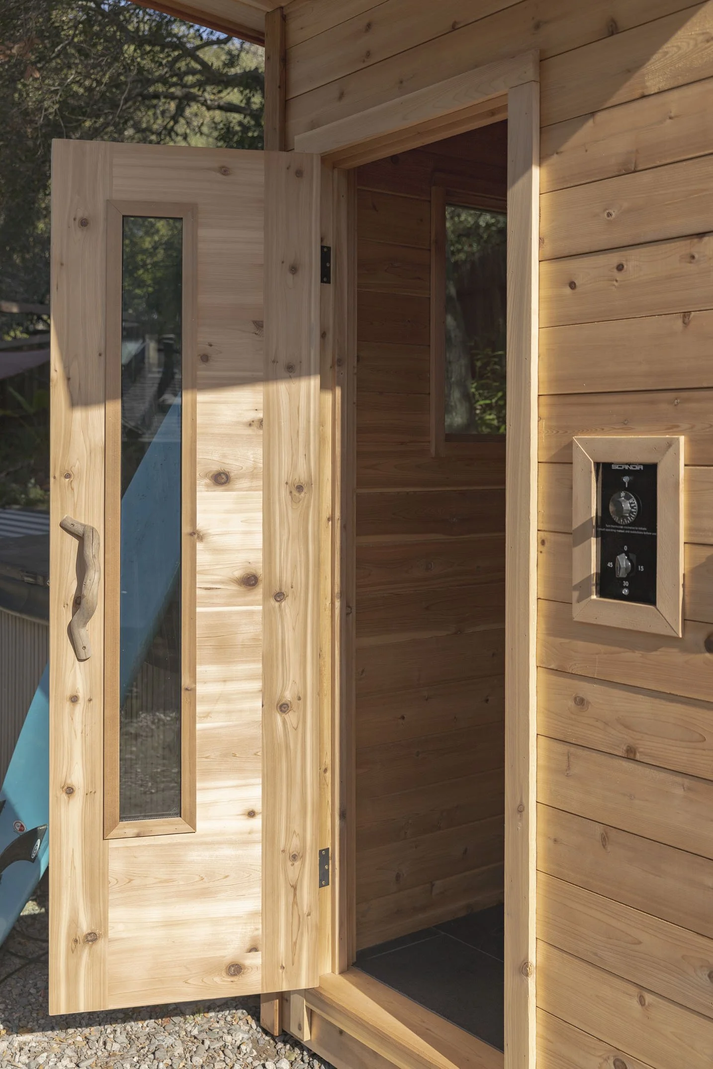 Each unit includes a Scandia heater made in the USA, tempered glass windows, a custom-crafted entry door, and proper ventilation for comfort and safety. Every sauna is designed with intention, built for balance, and made to last.